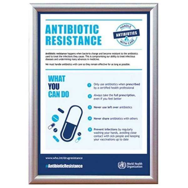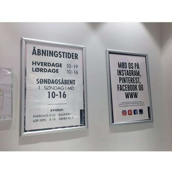 Sølveloxeret aluramme med hjørner i gering. Hvid PS bagplade samt APET antirefleks frontplade. Inkl. skruer og plugs til montering. Pakket med 5 stk. pr. karton.