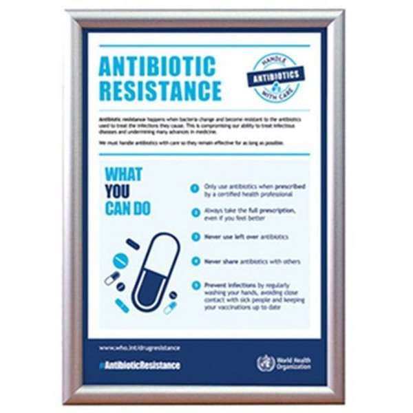 Sølveloxeret aluramme med hjørner i gering. Hvid PS bagplade samt APET antirefleks frontplade. Inkl. skruer og plugs til montering. Pakket med 5 stk. pr. karton.