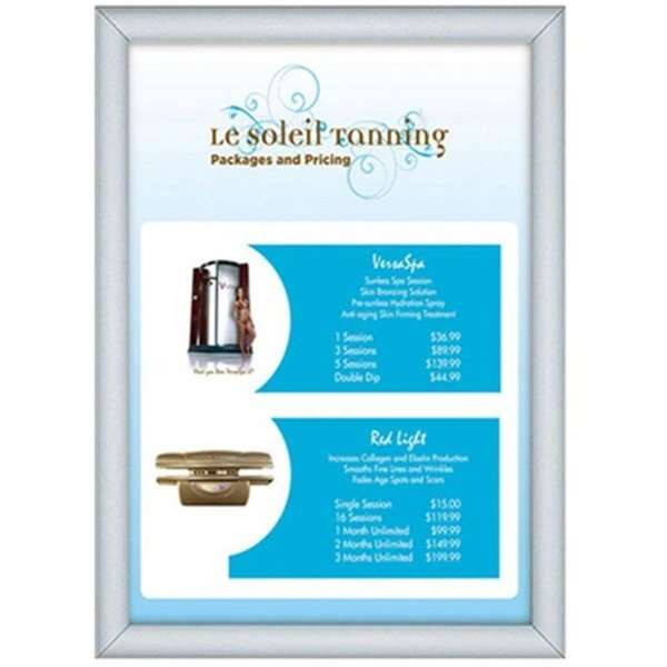 Sølveloxeret aluramme med hjørner i gering. Hvid PS bagplade samt APET antirefleks frontplade. Inklusiv skruer og plugs til montering. Pakket med 5 stk. pr. karton.
