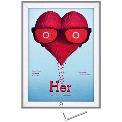 Sølveloxeret aluramme med hjørner i gering. Sikret med unbracolås. Leveres komplet med hvid PS bagplade samt APET anti- refleks frontplade. Inklusiv unbraconøgle, skruer og plugs. Pakket med 5 stk. pr. karton.