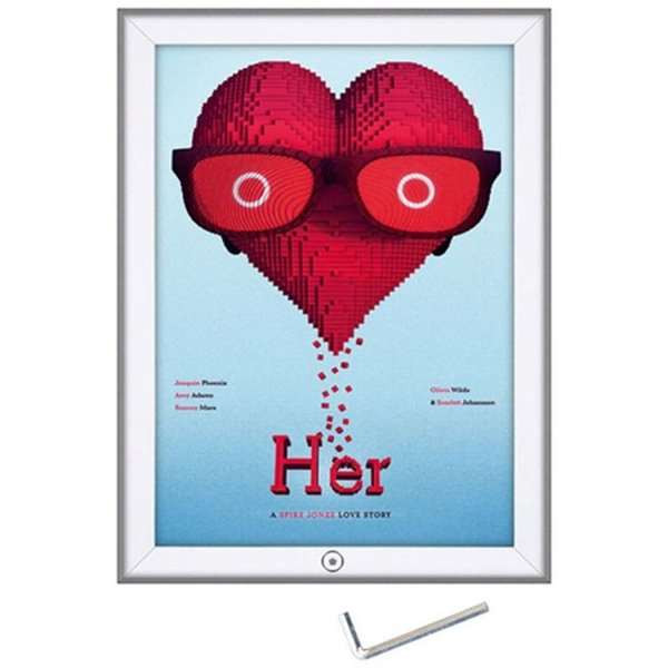 Sølveloxeret aluramme med hjørner i gering. Sikret med unbracolås. Leveres komplet med hvid PS bagplade samt APET anti- refleks frontplade. Inklusiv unbraconøgle, skruer og plugs. Pakket med 5 stk. pr. karton.