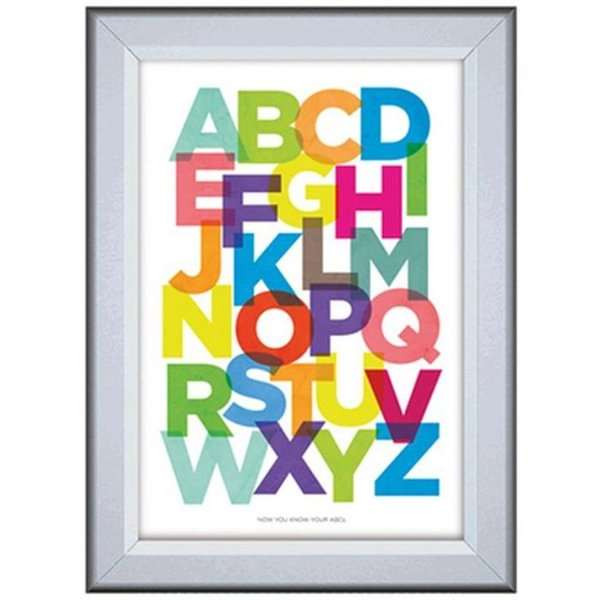 Sølveloxeret aluramme med hjørner i gering. Sikkerhedsprofilen kan kun åbnes med profilåbner Art. 4750 (ikke inkl.). PS bagplade samt APET antirefleks frontplade. Inklusiv skruer og plugs til montering. Pakket med 5 stk. pr. karton.