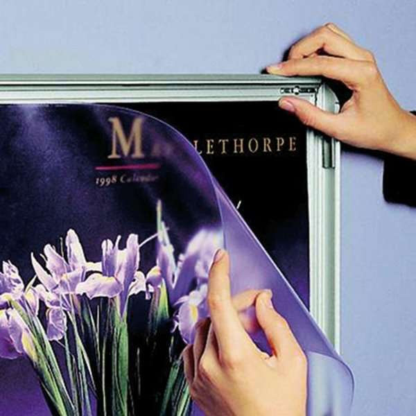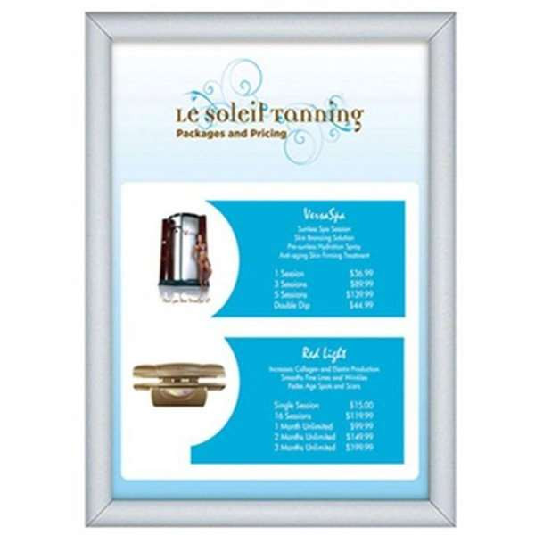 Sølveloxeret aluramme med hjørner i gering. Hvid PS bagplade samt APET antirefleks frontplade. Inklusiv skruer og plugs til montering. Pakket med 5 stk. pr. karton.