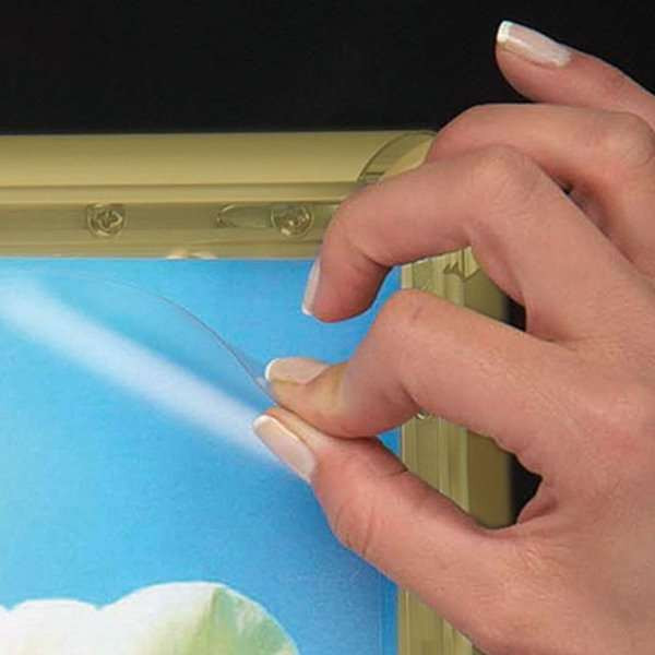 Hjørner i gering. Hvid PS bagplade samt APET antirefleks frontplade. Inklusiv skruer og plugs til montering. Pakket med 5 stk. pr. karton.