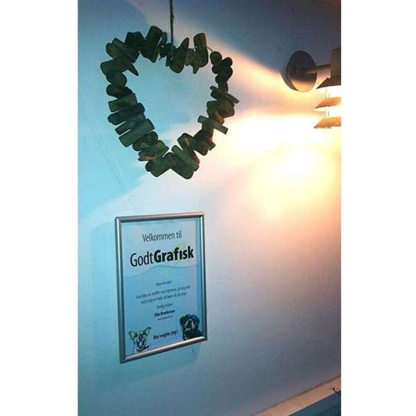 Sølveloxeret aluramme med hjørner i gering. Hvid PS bagplade samt APET antirefleks frontplade. Inkl. skruer og plugs til montering. Pakket med 5 stk. pr. karton.