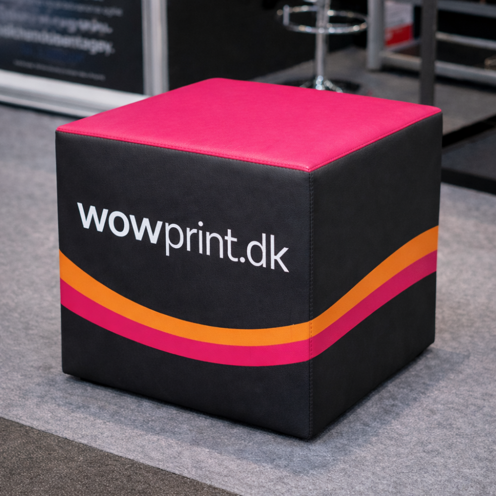 Kvadratiske pufs med tryk i dit eget design er en fleksibel og stilfuld løsning til messer, showroom, loungeområder eller butikken. Med WOWprint får du ikke bare et flot produkt – du får holdbar kvalitet, skarpt print og hurtig levering.